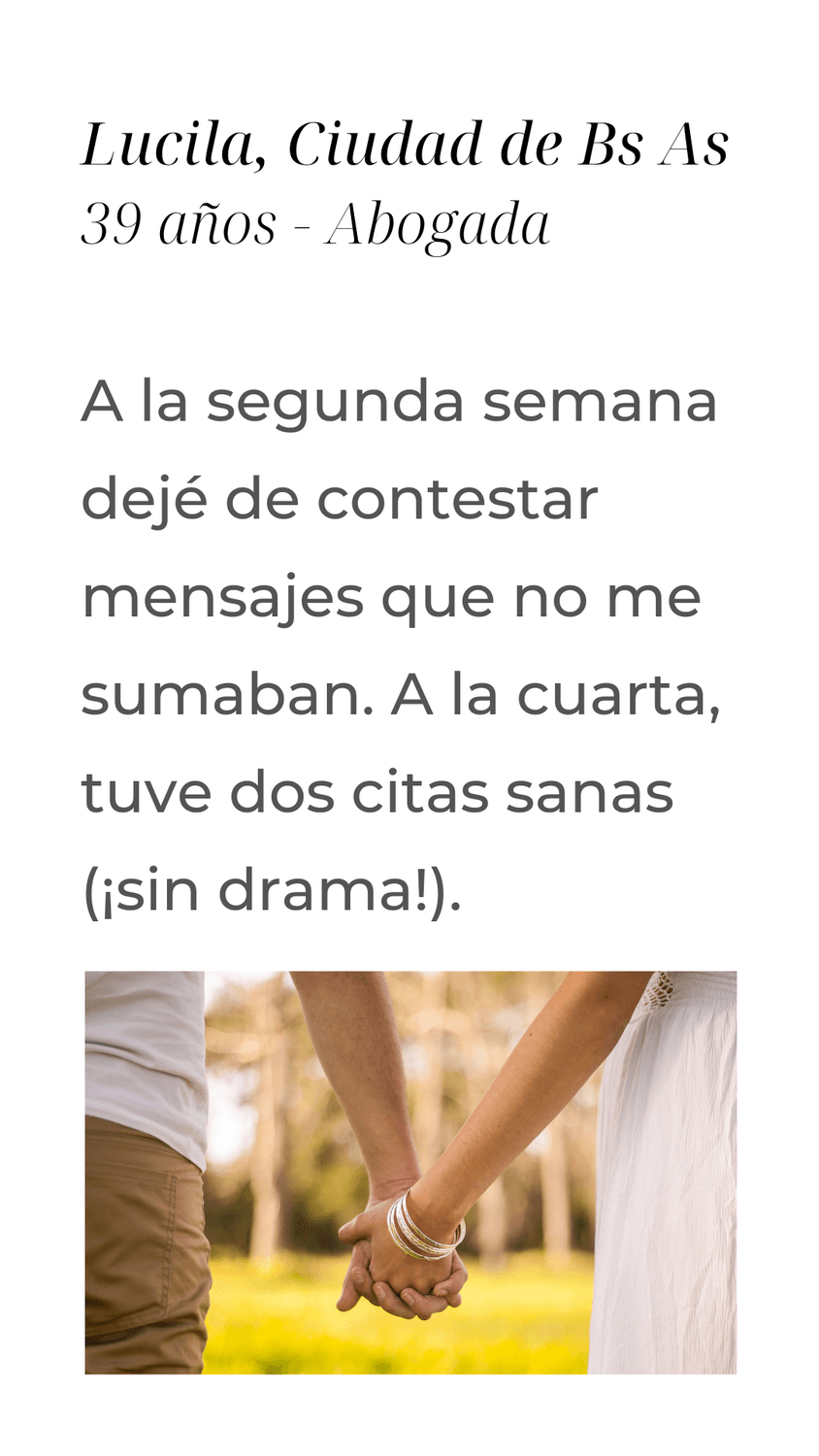Directora de Amor Ideal en Buenos Aires desde 2017. Acompaño a mujeres profesionales a elevar su autoestima, elegir mejor y construir relaciones conscientes.